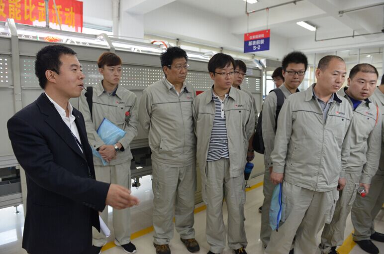 隨后,學員們分兩批在天信章欽養(yǎng)講師、陶朝建講師的帶領下參觀天信,高科技的展廳、規(guī)范整潔的生產車間、細致的看板管理、企業(yè)文化建設等方面,都引起了大家濃厚的興趣。